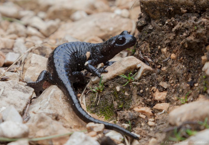 Alpine salamander / Alpensalamander /Salamandra atra, Dolomites, Italy